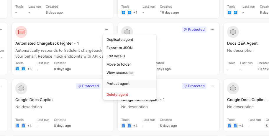 You can protect an agent with Source Control from the dropdown next to the agent name, or from the dropdown on the All agents page.