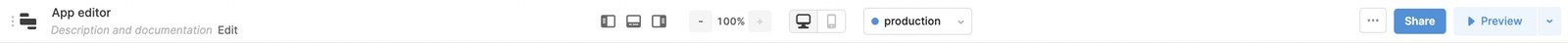 The App IDE is the interface you use to build Retool apps. It is made up of these primary areas: