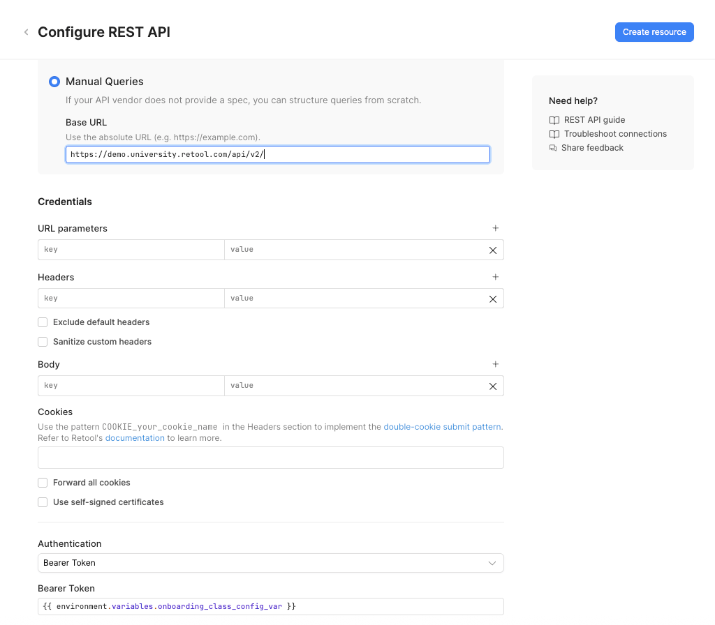 Students. - Create a resource now by selecting Create new > Resource > REST API