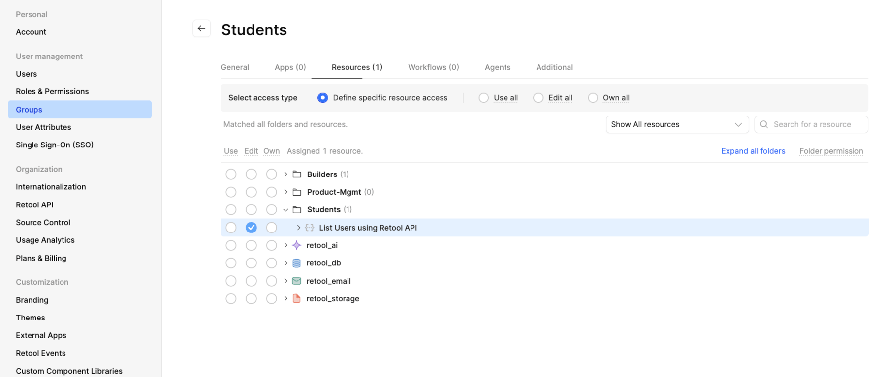listUsersand select theList Users using Retool APIresource. - Update the path to include