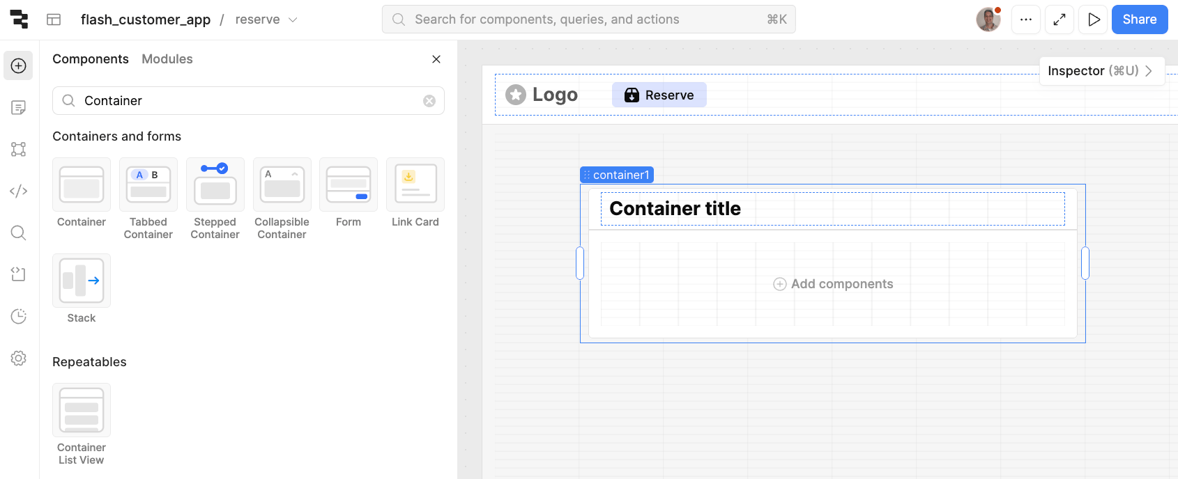 navigationCustomerheader. - Let’s connect the navbar to the page. Under Menu items > Reserve > Edit menu item > Page > reserve.